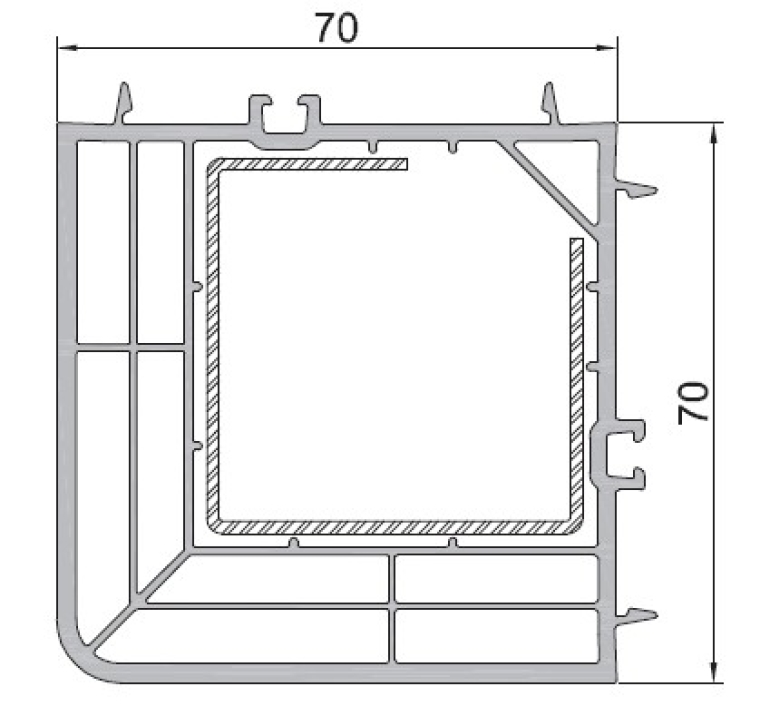 Hoekprofiel passend bij een 70mm-profiel.