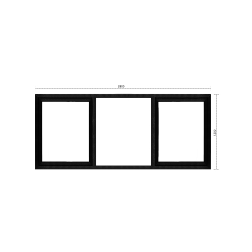 FENÊTRE 3 PARTIES - 2 x OSCILLO BATTANT + 1 x FIXE NOIR 2800 x 1200mm
