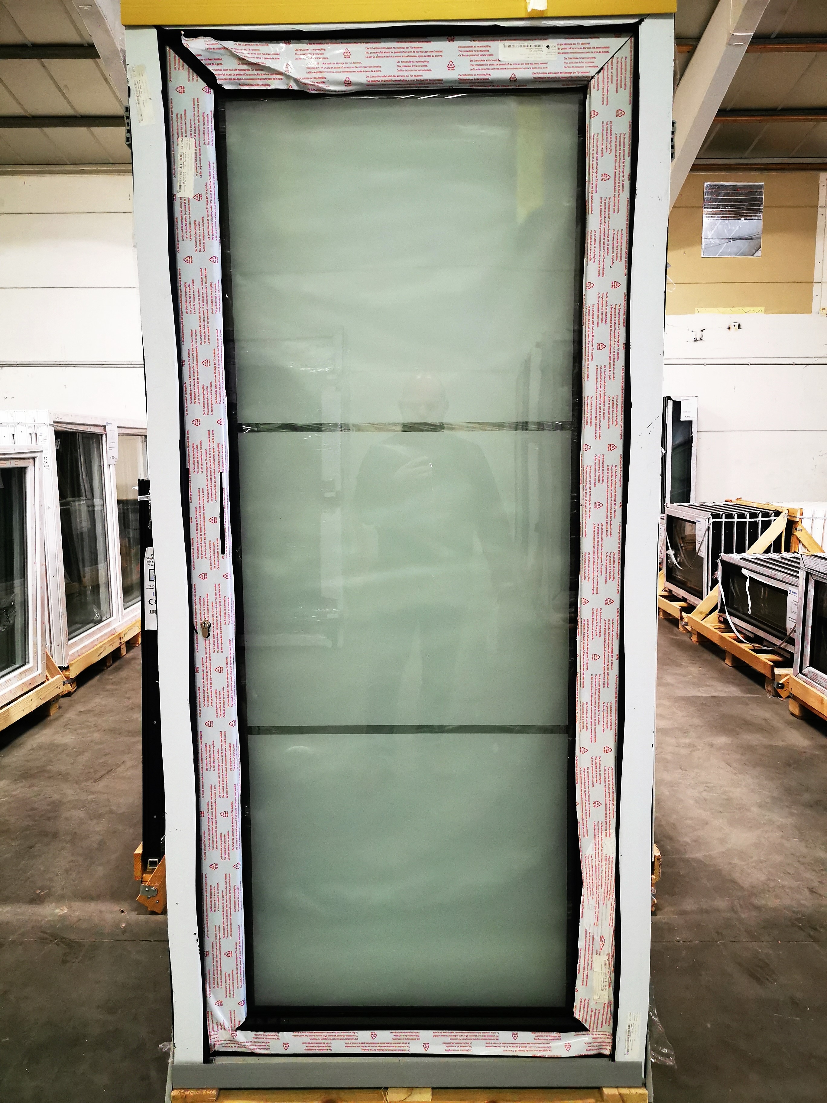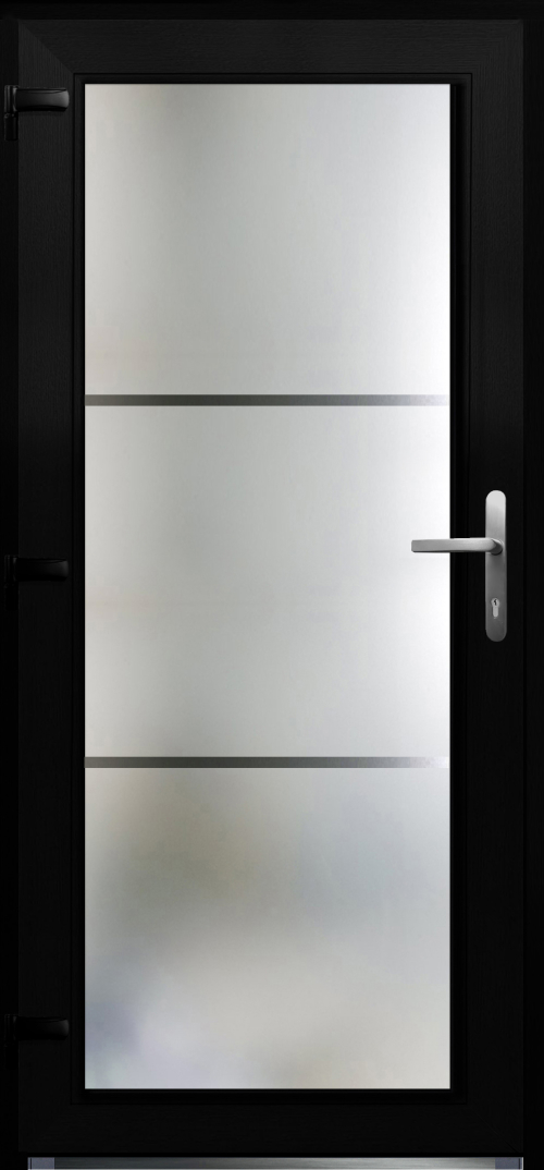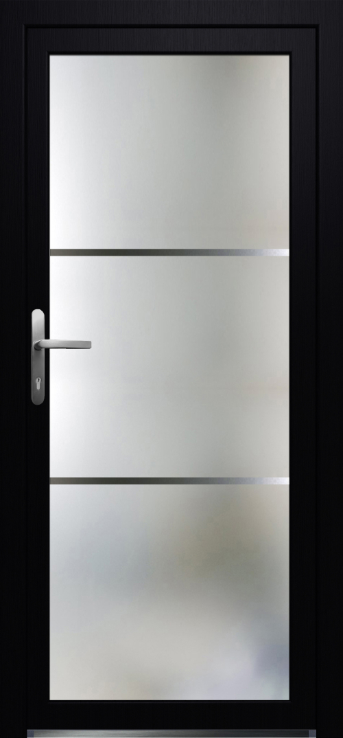 PORTE PVC 2/2 VITRAGE SABLÉ AVEC 2 LIGNES NOIR 980 x 2100mm G
