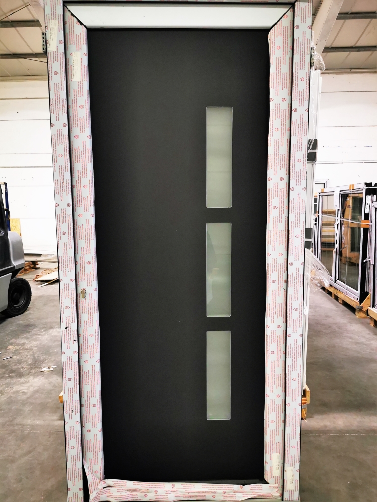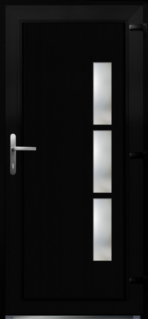 PORTE PVC AVEC PANNEAU DECORATIF 3 VITRAGES NOIR 980 x 2100mm D